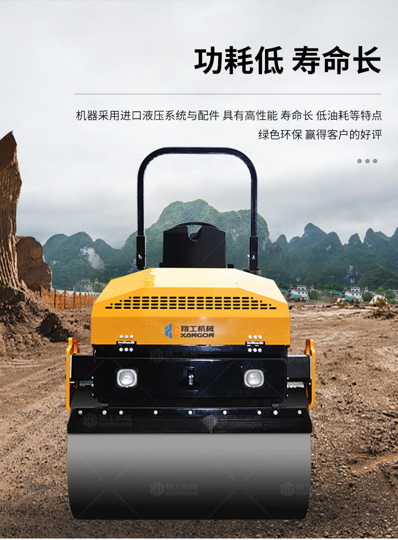 采用進(jìn)口液壓系統(tǒng),雙驅(qū)雙振,前后輪可單獨(dú)調(diào)節(jié)振動(dòng),亦可同時(shí)振動(dòng)。液壓轉(zhuǎn)向,液壓驅(qū)動(dòng),液壓行走,液壓振動(dòng)。進(jìn)口英國(guó)鉑金斯柴油機(jī)三缸水冷四沖程,動(dòng)力強(qiáng)勁,性能穩(wěn)定。超快速度一小時(shí)可達(dá)12千米,無(wú)極變速。壓土,碎石,壓瀝青,壓回填土效果超乎想象。