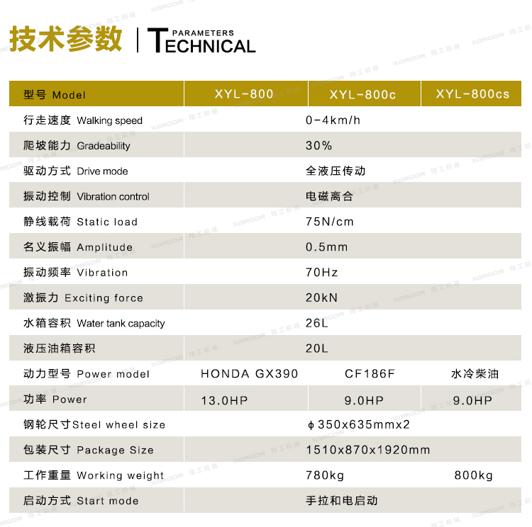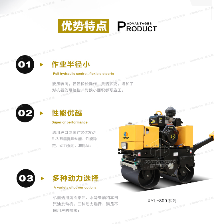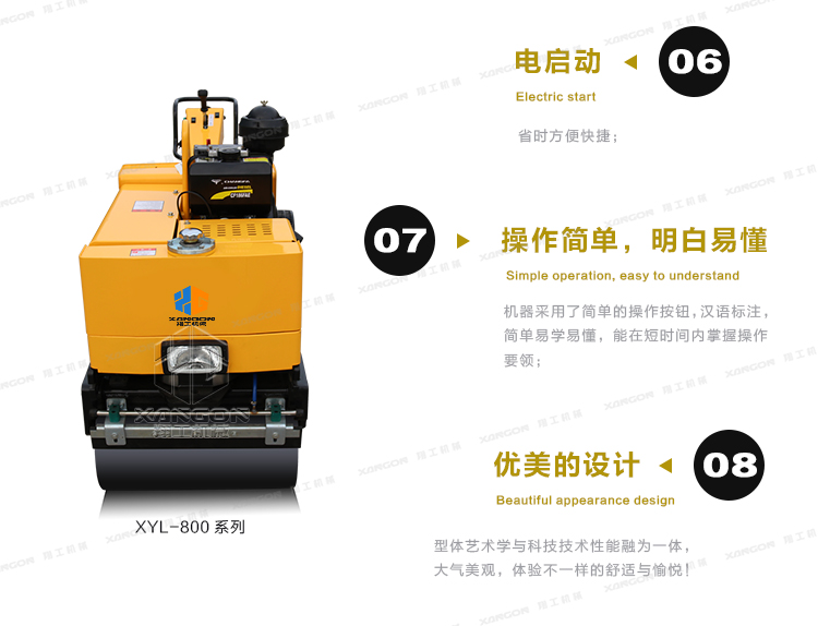 XYL-800C手扶全液壓壓路機(柴油)主要用于溝渠基礎(chǔ),道路,體育場地的壓實整平,也可用于壓實瀝青表面的作業(yè)。