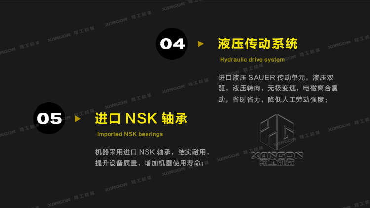 采用國際SAUER液壓傳動單元,無級變速,液壓轉(zhuǎn)向,換向方便;