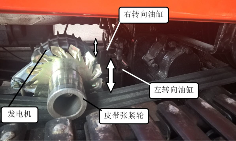注意:左、右轉(zhuǎn)向油缸頂桿單獨(dú)推出,控制左、右轉(zhuǎn)向;同時(shí)推出為臨時(shí)停車(chē);直線(xiàn)行走時(shí)油缸收回;調(diào)整發(fā)電機(jī)拉桿漲緊皮帶。