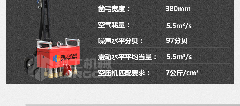 1、11個鑿毛頭的沖擊功率大,可達2200blow/分鐘,危害小;