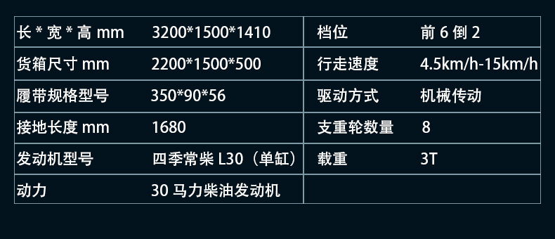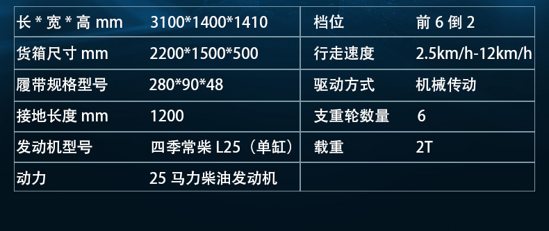 履帶運輸車是專門提供復(fù)雜路況運輸工作的機器,適用于普通運輸車輛無法或者不適合通行的地方。履帶運輸車以履帶代替了輪式行走,降低了對地面的損傷,同時履帶行走裝置降低了機器與地面的單位面積壓力,適用于山林、田地、沼澤、沙地、草地、雪地以及土質(zhì)松軟或氣候條件不太發(fā)的接近角和離地角。