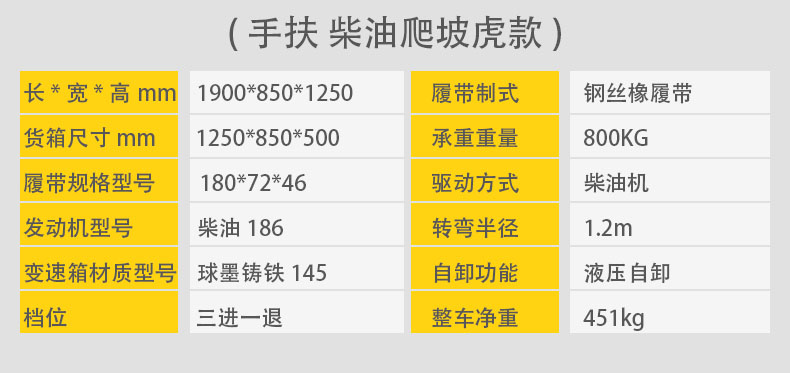 手扶式履帶運輸車它是采用手扶式的方式駕駛,自動靈活,安全可靠,可以在泥濘、結(jié)冰道路、沙漠、沼澤以及土質(zhì)松軟或氣候條件不太好的接近角和離地角行駛。它的性能穩(wěn)定,功能強勁,使用能力進(jìn)一步提高。運載能力強,爬坡能力大,操作簡單,維修保養(yǎng)容易。