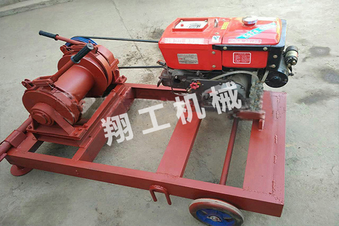 將卷揚機上纏繞的鋼絲繩一端通過三角架頂部槽輪與鏟頭相連至此鏟頭安裝完畢。