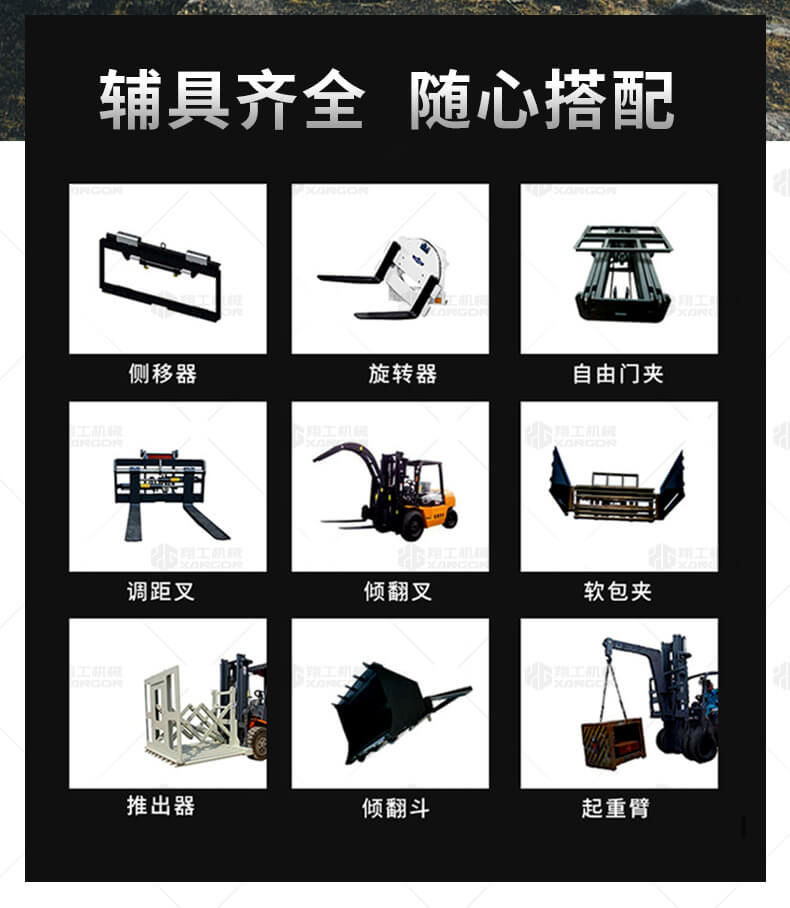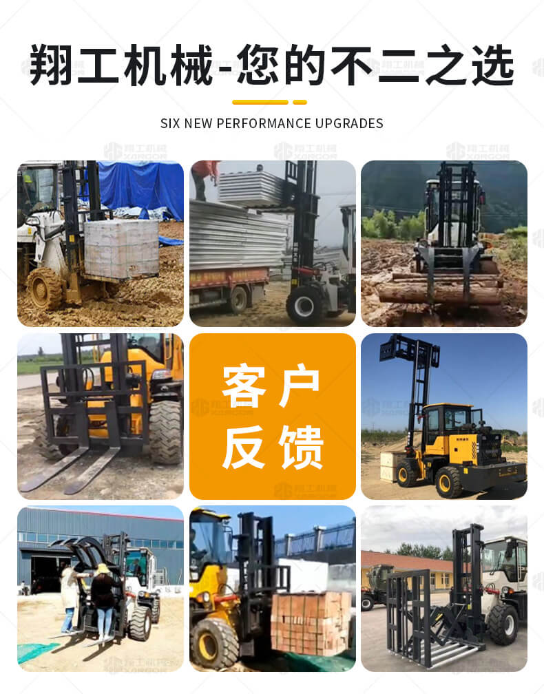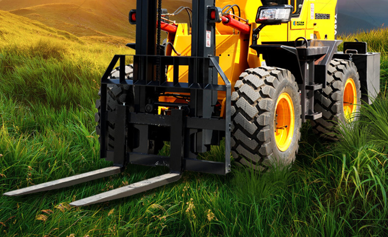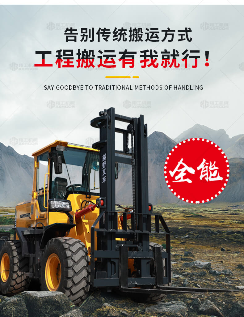 越野叉車可以在坡地和不平地面上進(jìn)行貨物裝、卸、堆垛及搬運(yùn)作業(yè),具有良好的機(jī)動(dòng)性、越野性可靠性。其功能多樣,可搭配側(cè)移器、調(diào)距叉、旋轉(zhuǎn)器、軟包夾、推出器、側(cè)翻叉、側(cè)翻斗、起重臂等工具完成不同的工作。