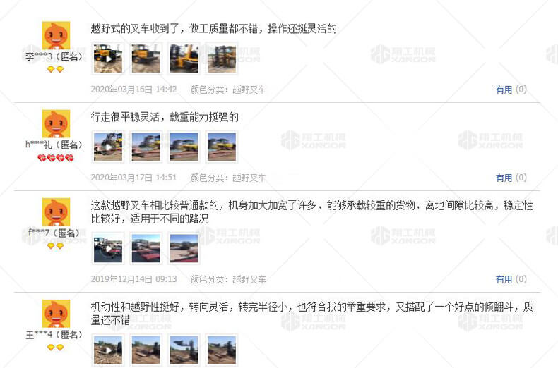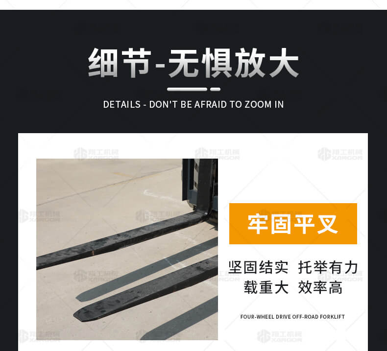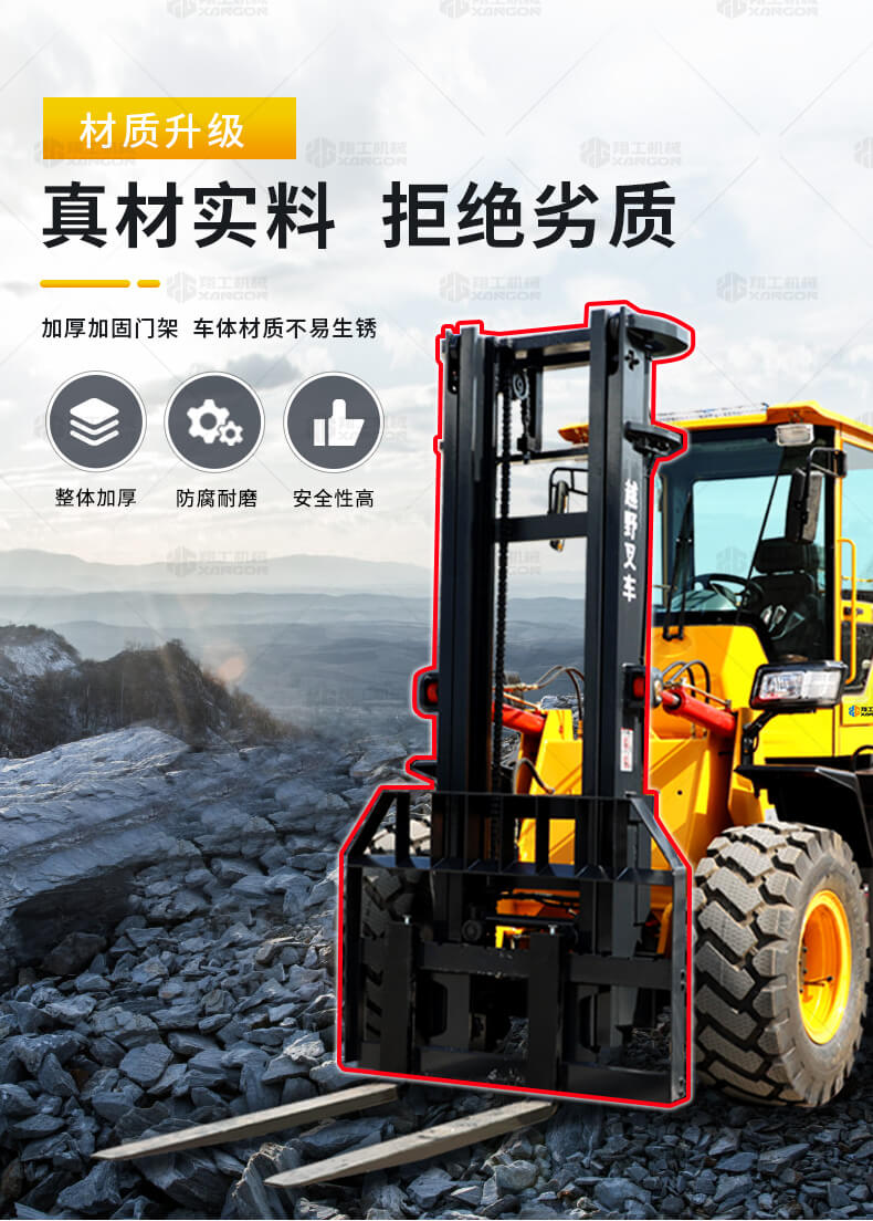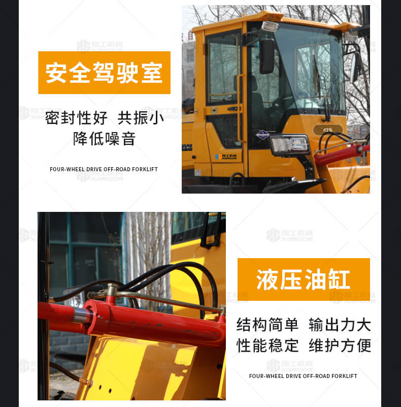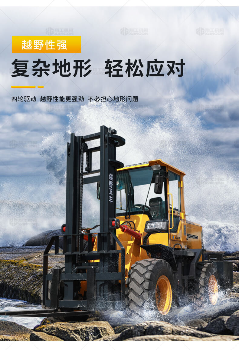 3.普通叉車只能在平整的路面上作業(yè),而越野叉車既可以在普通路面上作業(yè),還可以在山路泥路崎嶇道路作業(yè),輪胎抓地力強(qiáng),不打滑。