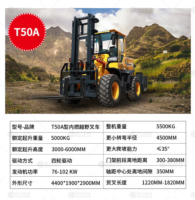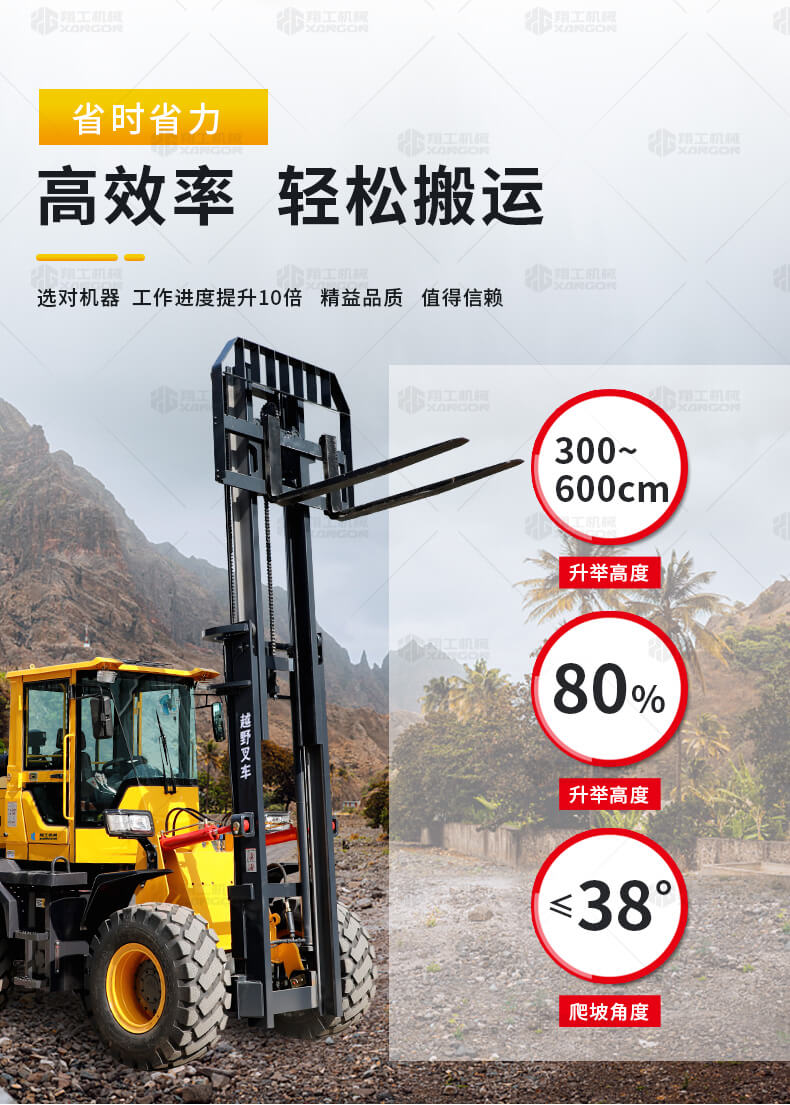 4.越野叉車的速度高于普通叉車,目前已發(fā)展到40km/h,其機(jī)動(dòng)性顯而易見(jiàn)。