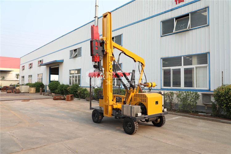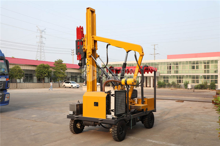 小四輪打樁機(jī)適用于公路護(hù)欄鉆孔、打樁、拔樁,其他各種場(chǎng)地打樁(農(nóng)場(chǎng)、園林、果園),公路野外工程施工。