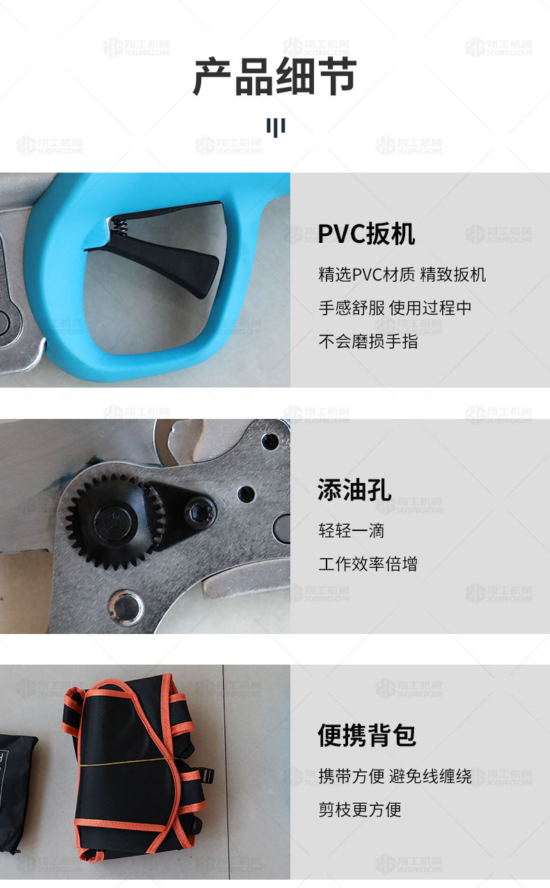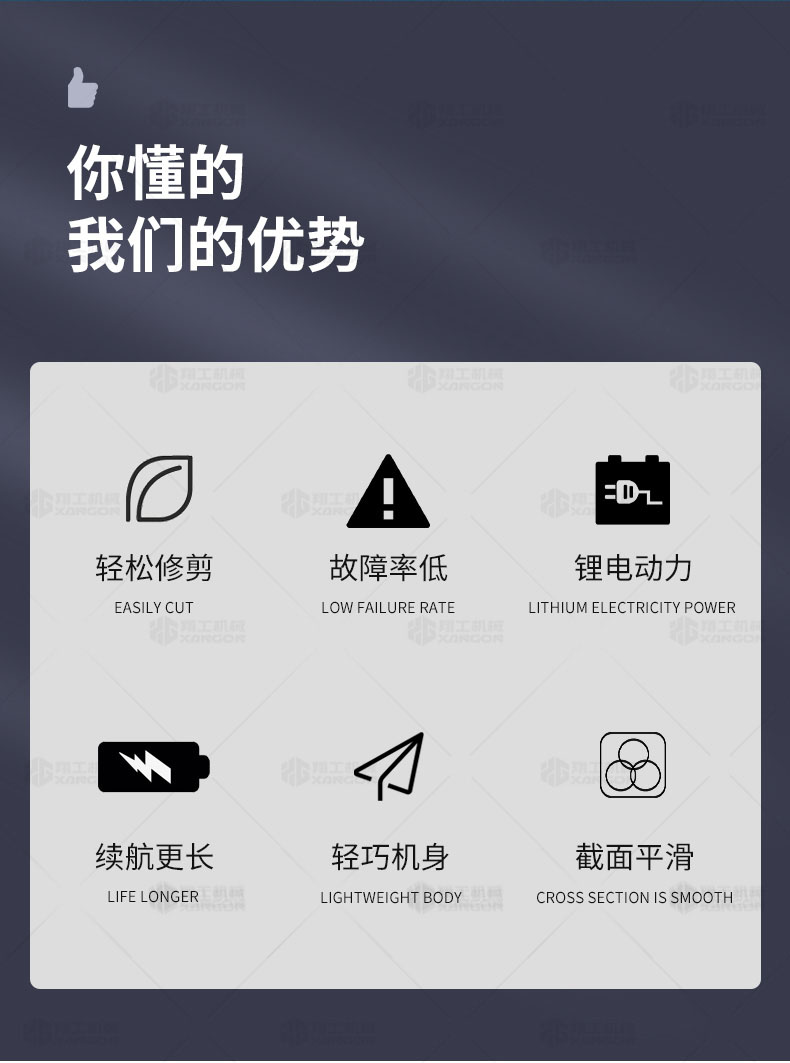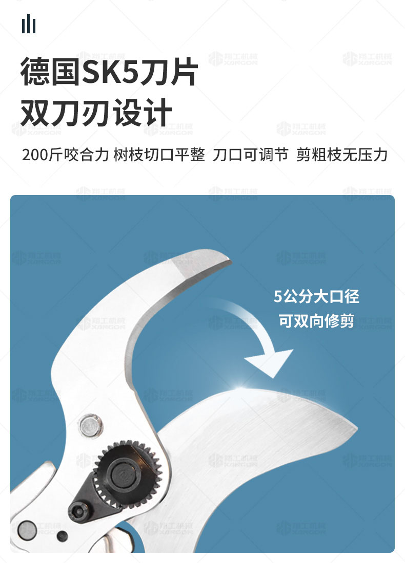 修枝剪剪切范圍:直徑40MM硬枝(硬枝:冬青、黃楊、檜柏、刺柏、紫薇、茶樹等等)至50MM軟枝(軟枝:葡萄枝類)