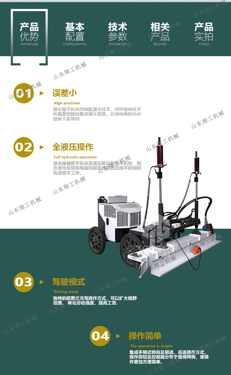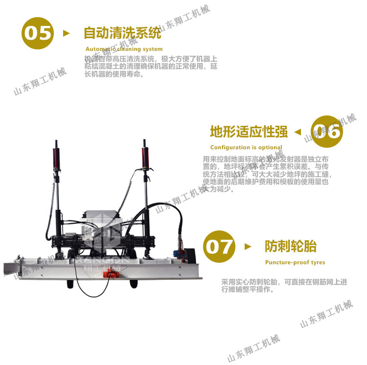 翔工機械精心研制開發(fā)的激光混凝土整平機利用先進的激光發(fā)射接收系統(tǒng)形成的閉環(huán)回路控制整平板尺的工作,精度高,廣泛用于現(xiàn)代工業(yè)廠房、大型購物場所、貨倉及其它大面積混凝土地面施工。
